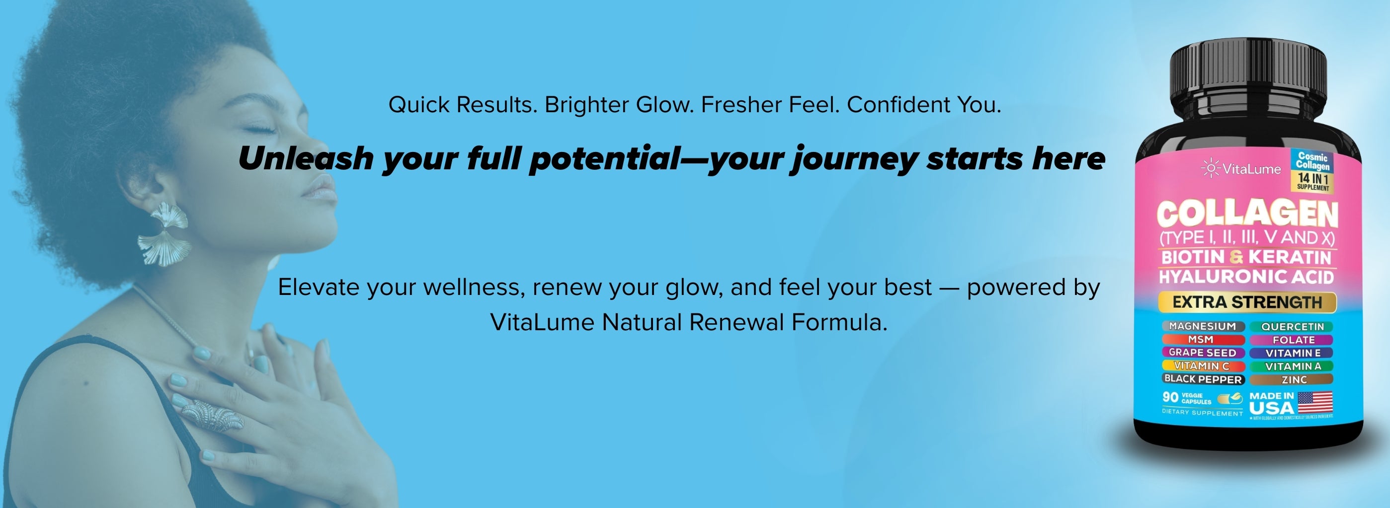 Bring it back with VitaLume’s natural renewal formula — crafted with collagen, biotin, and antioxidants to restore your radiance from within.